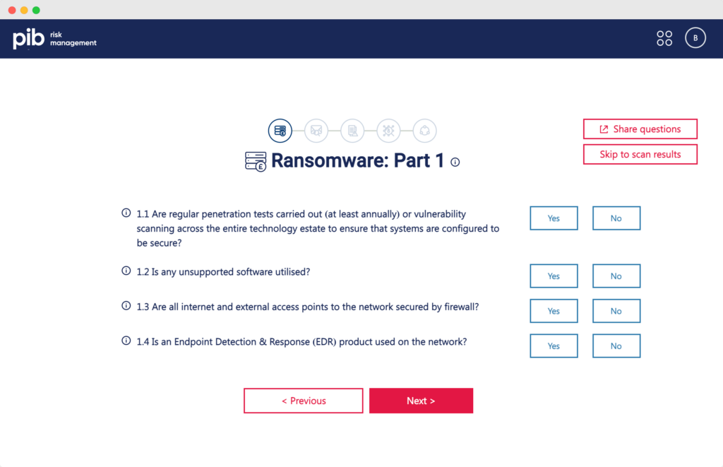 Quickly evaluate your cyber risk by completing a straightforward security questionnaire. This interactive assessment provides clear and easy-to-follow instructions to help you understand your current security posture.